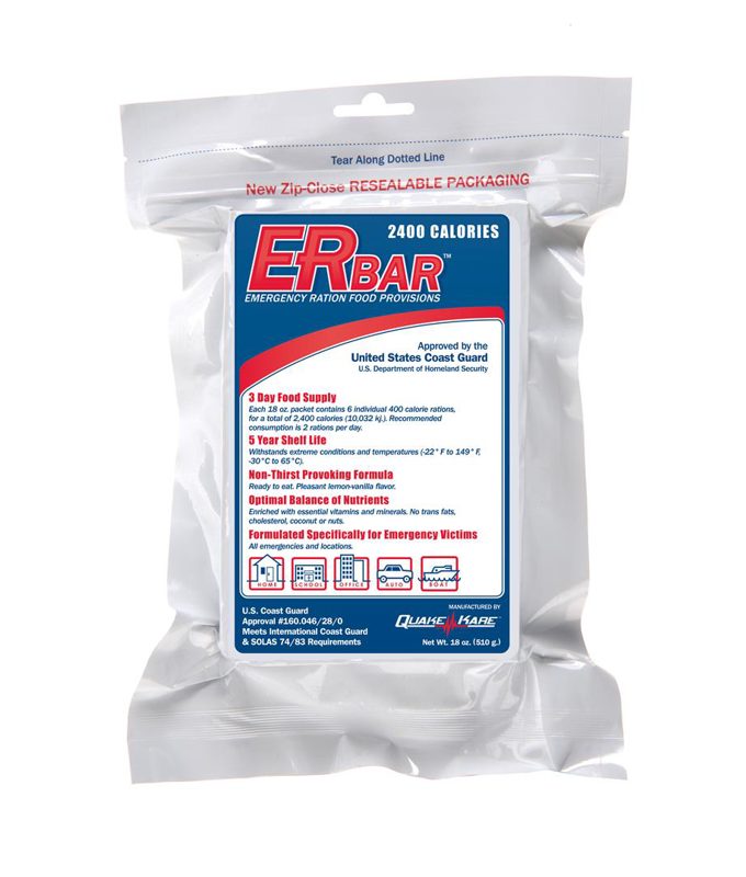 Preparadas con los ingredientes más puros y bajo las condiciones más estrictas. Diseñadas científicamente para proporcionar el equilibrio óptimo de humedad, sal, carbohidratos, proteínas y grasas para las víctimas sobrevivientes. Certificadas por la Guardia Costera de los EE. UU. para permanecer frescas hasta por 5 años incluso cuando se exponen a temperaturas extremas. Almacene un suministro mínimo de 3 días de alimentos de emergencia en su hogar, vehículo u oficina. Estas barras son seguras para almacenar al aire libre y no se estropean si se dejan en un vehículo caliente o frío. Tenga en cuenta que los productos enlatados suelen tener fechas de vencimiento de menos de 5 años. Asegúrese de que su familia tenga un suministro de alimentos seguro y adecuado almacenando las barras ER en su kit de supervivencia.