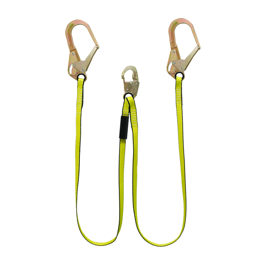 Eslinga de posicionamiento doble en Y longitud fija 1.8m en reata poliéster de 25mm con doble gancho grande 2½’ y (1) gancho pequeño ¾’ (CERTIFICADO ANSI Z359.3 de 2007) Referencia 50-23RC