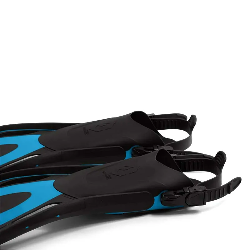 Aletas profesionales de talón abierto con pala de canalización. La aerodinámica de la aleta, reduce la resistencia, maximiza el empuje y minimiza la fatiga durante la patada. El material TPR incorporado en la pala absorbe el agua durante la patada gracias a su elasticidad y su forma arqueada, produciendo aún más empuje.