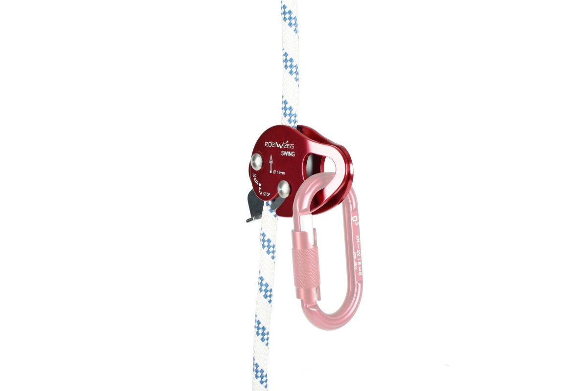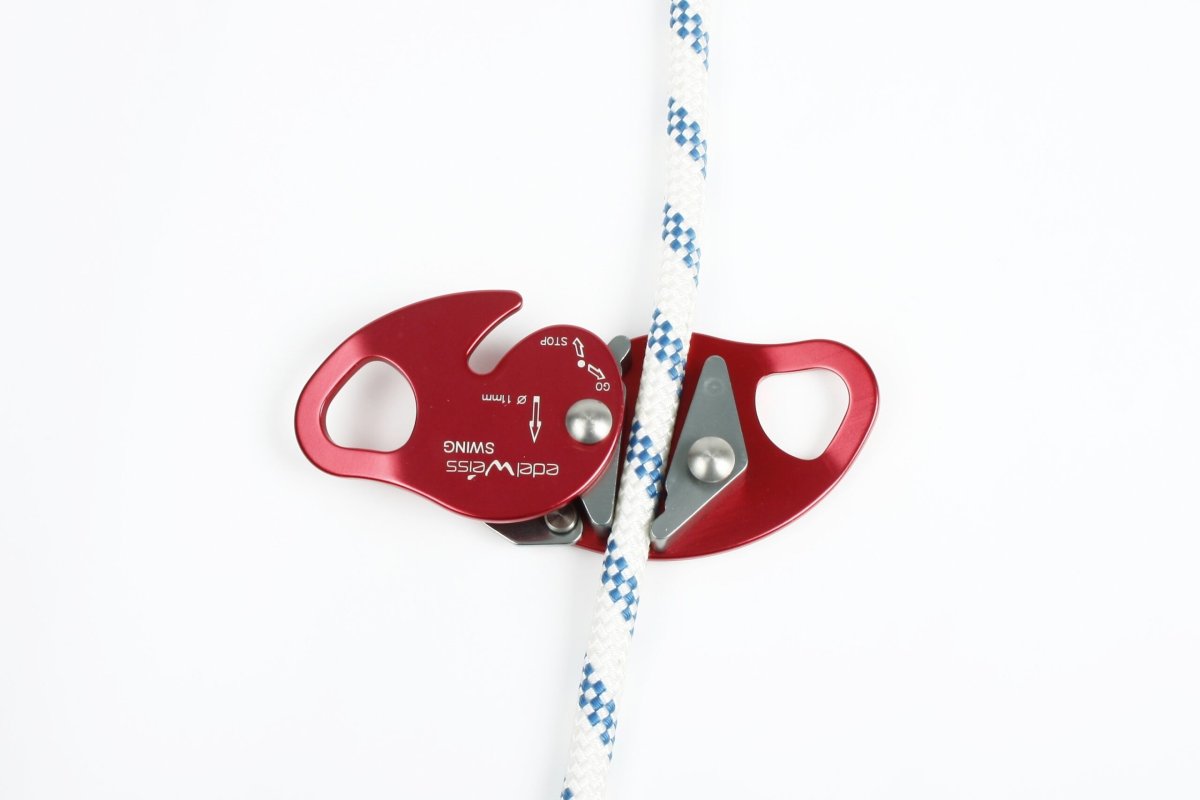 El Swing es un freno anticaídas que se desplaza suavemente por la cuerda en ambas direcciones y se acciona únicamente en caso de una caída. No maltrata la cuerda gracias a sus levas no dentadas.