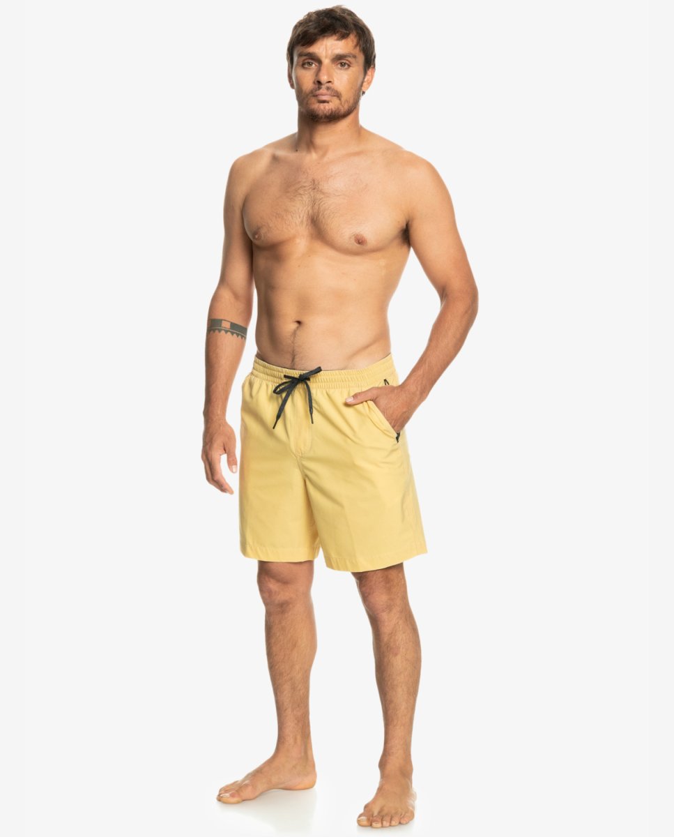 Bañador Quiksilver Boardshort Taxer 18″, composición 92% poliéster reciclado, 8% elastano, tejido Super Suede elástico, bañador con corte de bermudas, cintura elástica ajustable con Cordón, 2 bolsillos laterales y 2 bolsillos traseros con cierre de velcro, tejido resistente al agua, monocolor y de diseño funcional, ideal para tu días al sol.