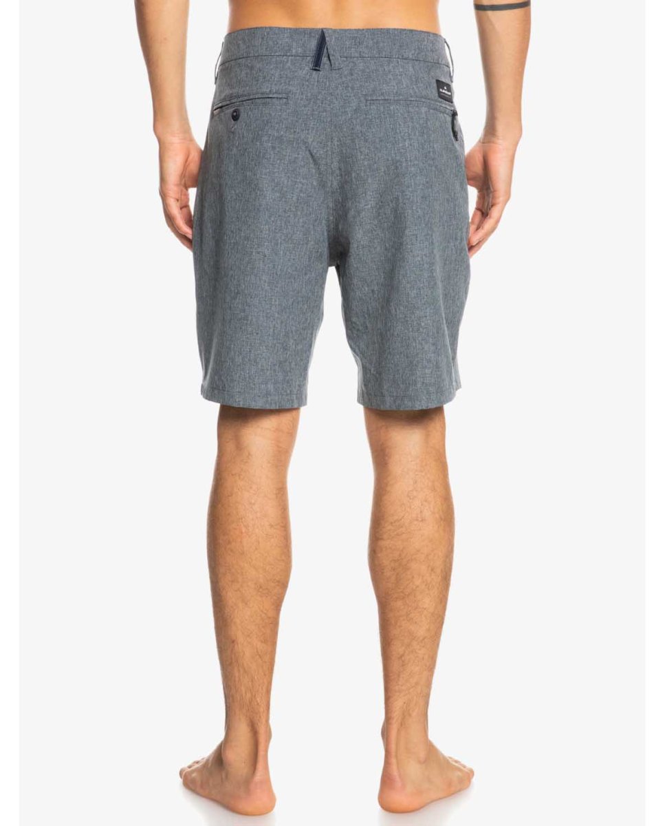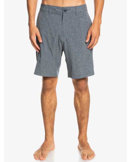 Bañador Quiksilver Híbrido Vintage Indigo, composición 92% poliéster reciclado, 8% elastano, tejido Super Suede elástico, bañador con corte de bermudas, cintura fija con cinchas para cinturón, 2 bolsillos laterales y 2 bolsillos traseros con cierre de cremallera y botón, tejido resistente al agua, monocolor y de diseño funcional, ideal para tu días al sol.