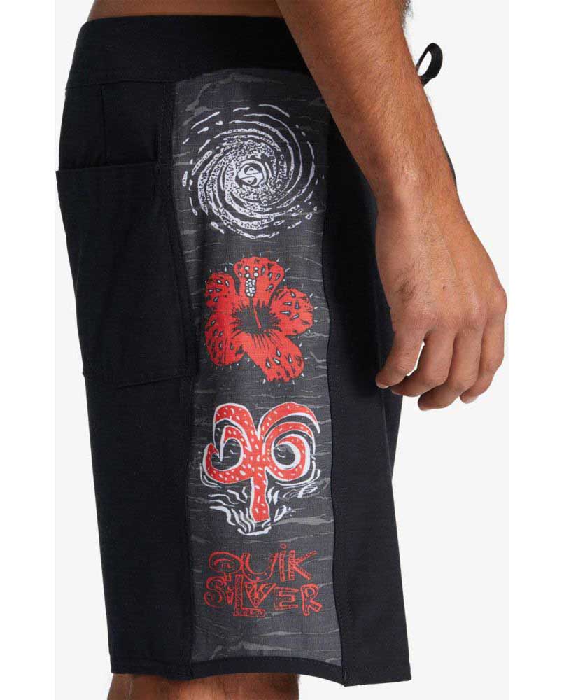 Bañador Quiksilver Original Arch 1986 , confeccionado con tejido reciclado REPREVE™ con una elasticidad de 4 direcciones para una máxima libertad de movimientos, bolsillo trasero cierre con velcro ultrarresistente y cordón elástico para llaves, tratamiento hidrofóbico DryFlight® que repele el agua,  cintura fija con cierre con cordón, laterales combinados, de diseño cómodo y funcional.