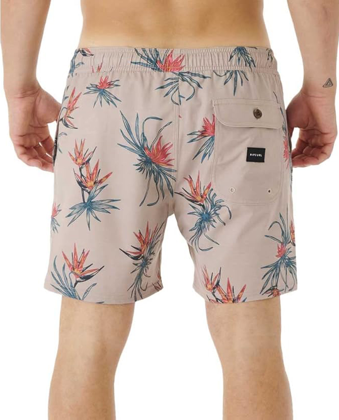 Bañador Rip Curl Paradiso Volley, 100% poliéster, fabricado con materiales reciclados, ultra elástico, tratamiento repelente al agua, cintura elástica ajustable con cordón, 2 bolsillos laterales y un bolsillo trasero con cierre y cuerda portallaves, ideal para pasar largas horas al sol o practicando tu deporte favorito.