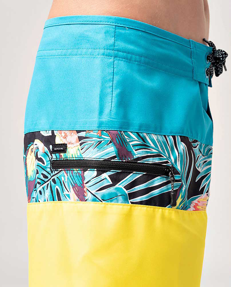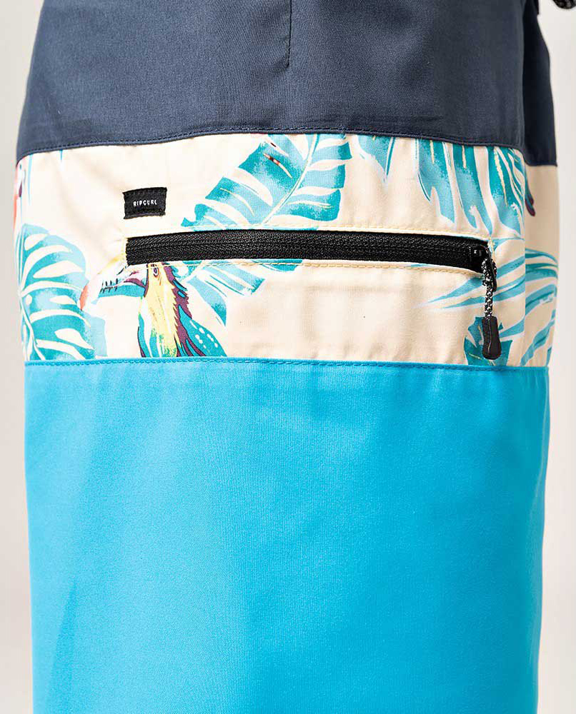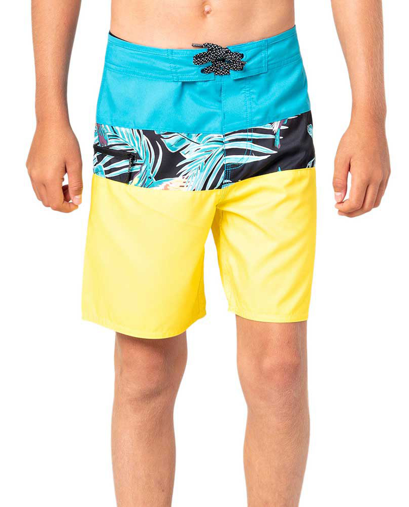 Bañador Rip Curl Undertow Junior (varios colores), 100% poliéster, corte clásico con camal de 40,5 cm, diseño multicolor con combinación estampada. bolsillo lateral con cremallera, logo y nombre de la marca impreso lateral izquierdo. Cómodo y versátil, para disfrutar de el fuera y dentro del agua.