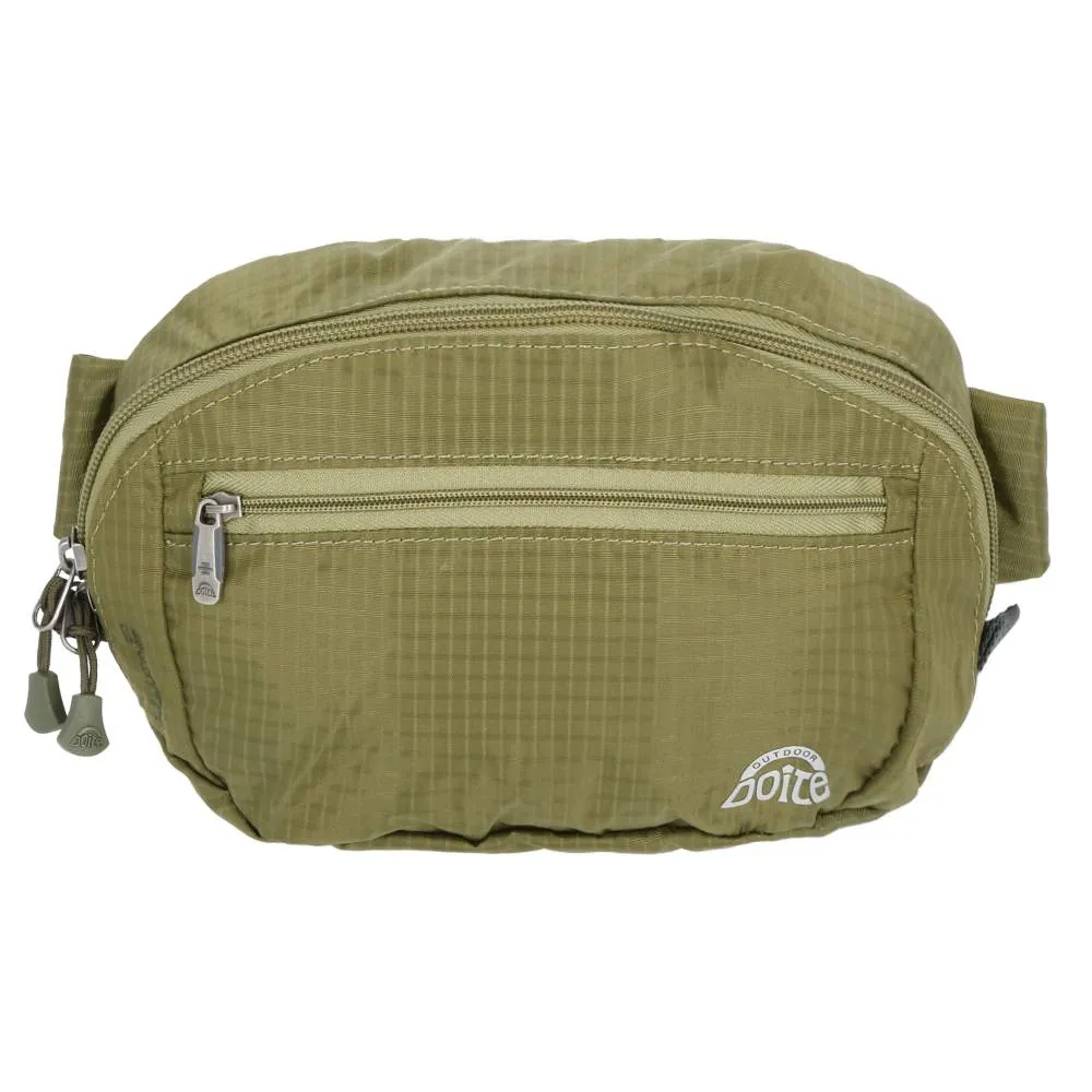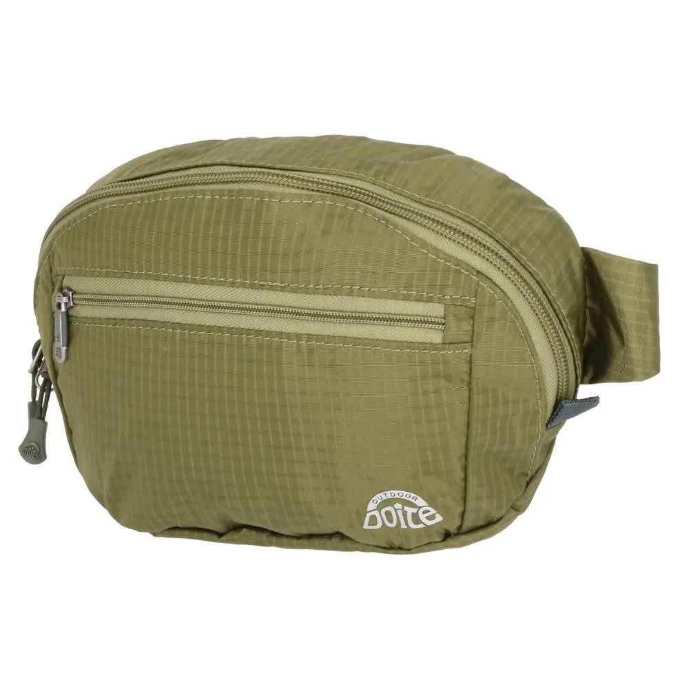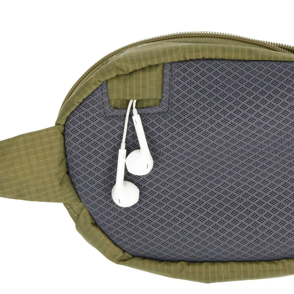 Banano básico de uso casual. Posee 2 bolsillos con divisiones interiores, y salida de audífonos.
