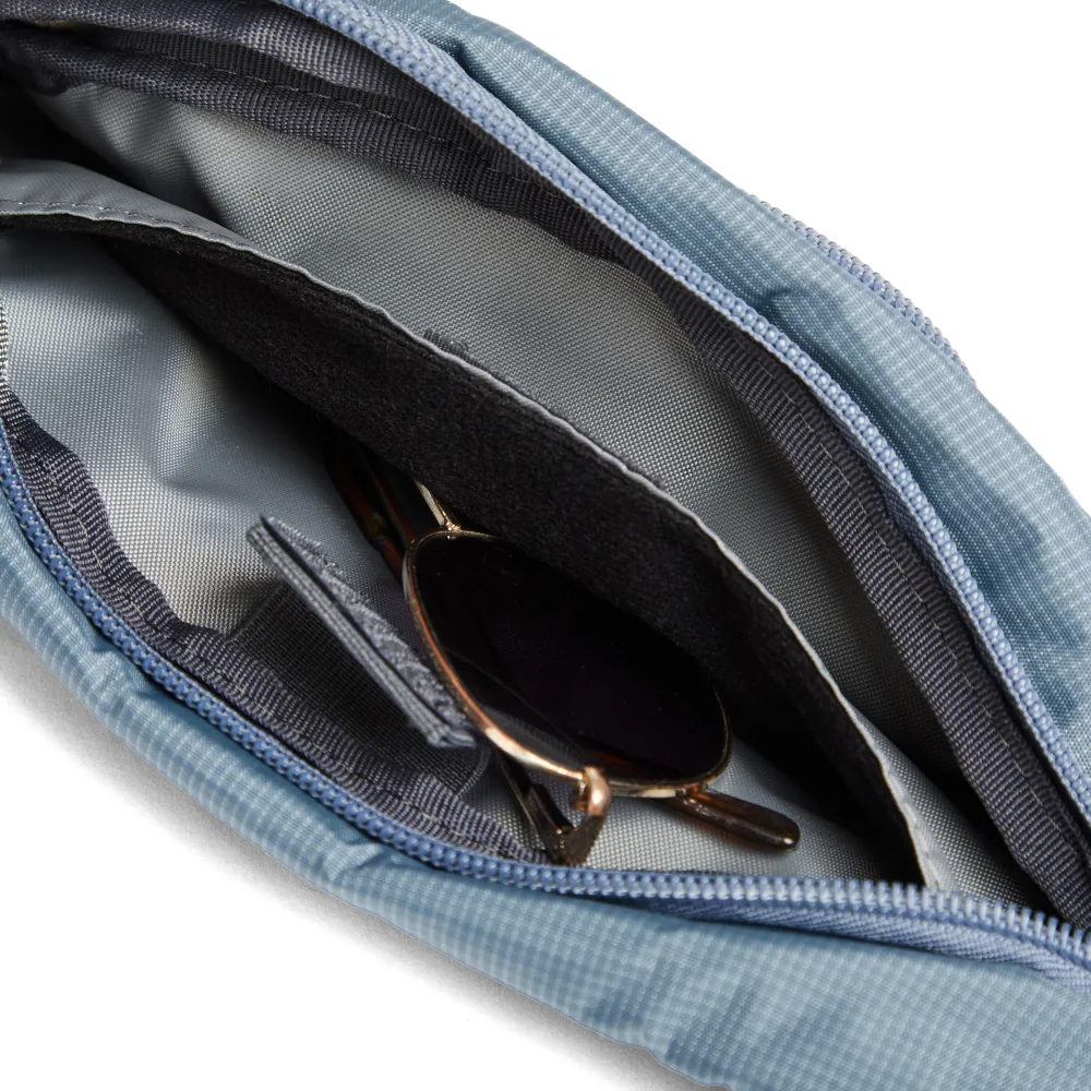 Banano de viajes o paseos con tecnología RFID que previene el robo de identidad, datos personales y utilización de tarjetas, a través del bloqueo de escaneos no autorizados, evitando el acceso a la información del chip de tarjetas bancarias.