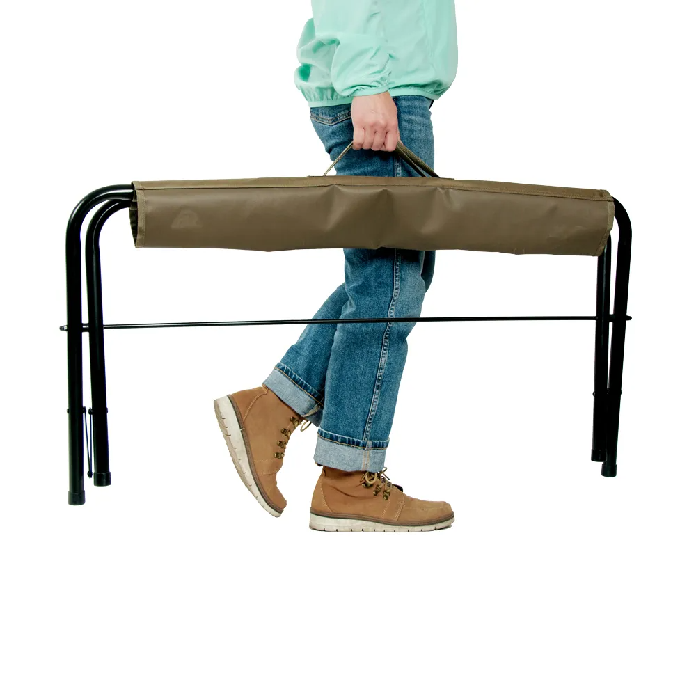 Banca plegable para 2 personas, ideal para camping. Compacta y fácil de transportar, con estructura resistente y asiento cómodo. Perfecta para relajarse al aire libre.