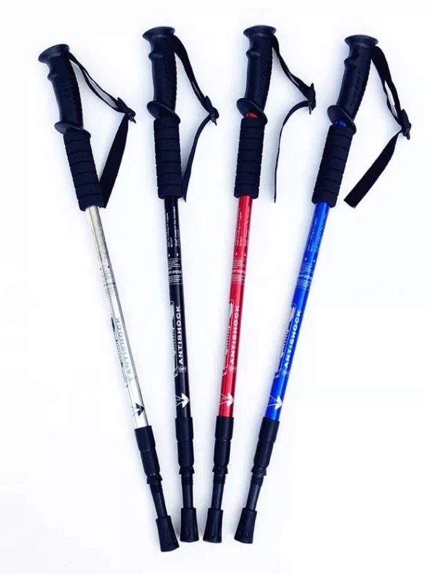 Bastón de senderismo telescópico ajustable de 3 secciones. Longitud ajustable de aproximadamente 65-135cm, mango antideslizante, muy cómodo de sostener. El mecanismo de resorte antichoque reduce las tensiones en las manos y la muñeca. Es duradero y correa de muñeca ajustable lo cual proporciona un agarre más seguro. Punta de acero de tungsteno con virola de goma extraíble, protege el bastón de senderismo. Aleación de aluminio, fuerte y ultraligero, cómodo de llevar. Una herramienta necesaria para actividades al aire libre.