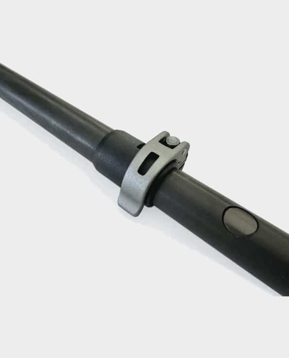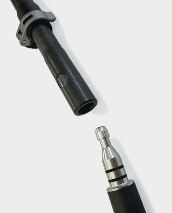 El planteamiento se centra en usar un único ajustador externo y una conexión rápida en el tramo inferior, para poder variar la longitud y, cuando conviene, reducir el tamaño plegado desconectando la sección de la punta.