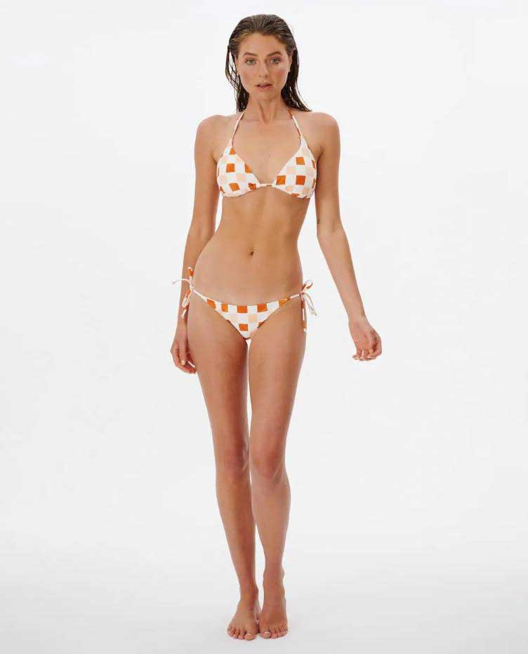 Bikini Rip Curl Surf Checka, confeccionado en dos piezas con una mezcla de poliamida y elastano, braguita de cobertura media ajustable, pecho triangulo con tirante fino ajustable. Con un diseño clásico el Check Cropde de Rip Curl gracias a su diseño vintage, te trasporta al pasado de las míticas playas californianas, esta pensado para disfrutar de horas de agua sin dejar de lado la comodidad.