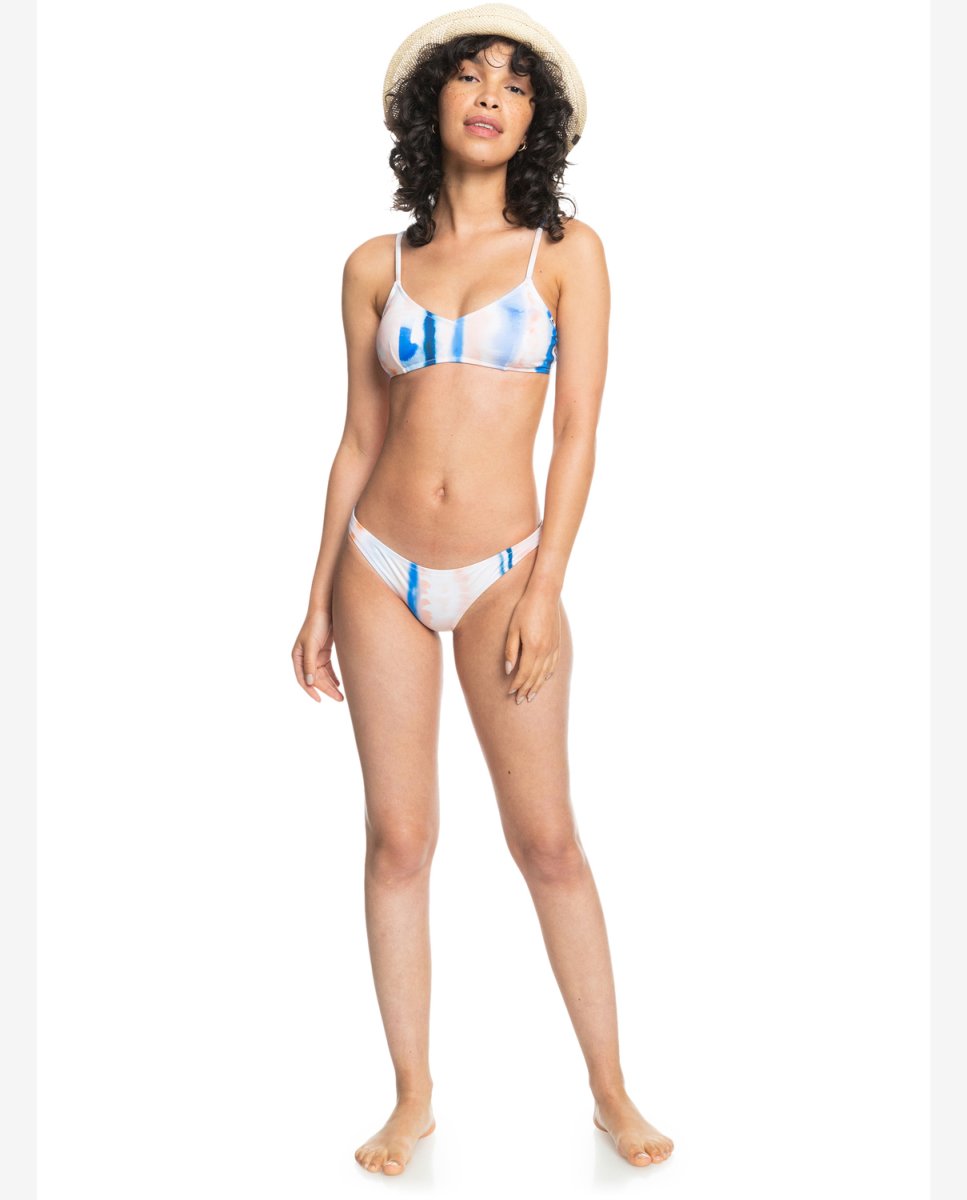 Bikini Roxy Classic V, tejido reciclado, suave, resistente y elástico con textura lurex, parte de arriba tipo bandeau de tirantes ajustable, braguita de cobertura media, comodo y muy versátil, preparado para pasar largas horas disfrutando de tus actividades al aire libre o de un paseo por la playa.