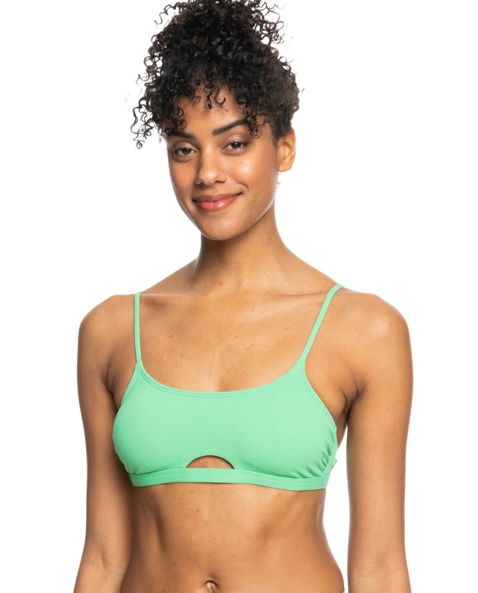 Bikini Roxy Color Jam Bralette, 95% nylon reciclado, 5% elastano, tejido reciclado suave, elástico y resistente al agua con textura piqué, pecho tipo bandeau con tirante ajustable, almohadillas extraíbles, braguita ajustable de cobertura media, de diseño monocolor con detalle en pecho. El color Jam Bralette es un bikini de diseño actual, cómodo y preparado para pasar largas horas disfrutando de tus actividades al aire libre.