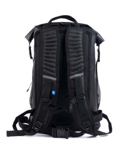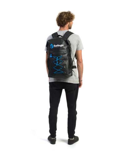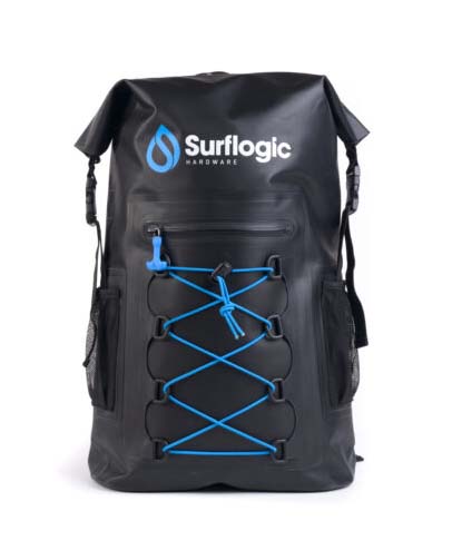 Bolsa Estanca Surflogic Prodry 30L, medidas 33 x 15 x 50 cm, cierre estanco de tipo roll-top, bolsillo externo con cremallera estanca e interno de malla con cremallera, correas ajustables acolchadas con parches reflectantes, respaldo acolchado con sistema