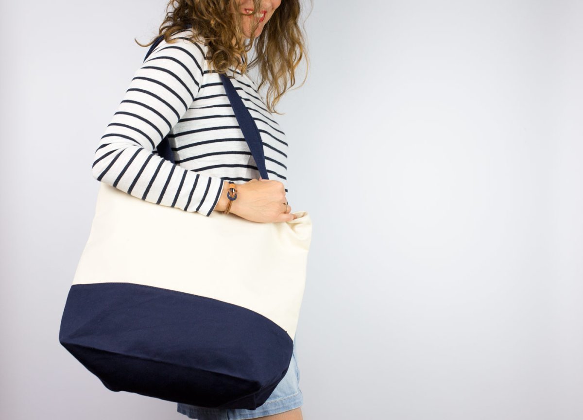 Bolsa marinera de rayas blanca y azul marino