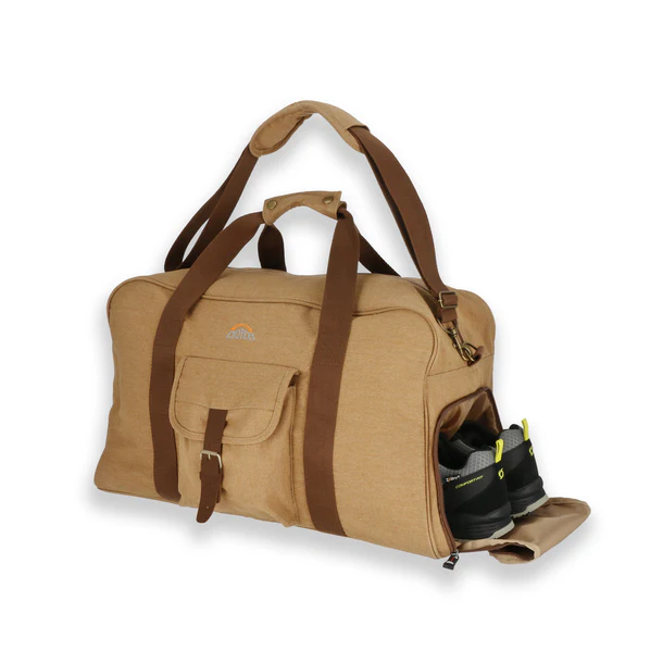 Bolso de mano Doite, resistente, elegante y funcional, ideal para viajes, gimnasio o escapadas de fin de semana. Fabricado con material exterior 100% algodón y forro interior de poliéster, ofrece durabilidad y un diseño cómodo con manilla acolchada y cierres metálicos. Incluye compartimento para zapatos y bolsillos organizadores para mantener tus pertenencias siempre a mano.