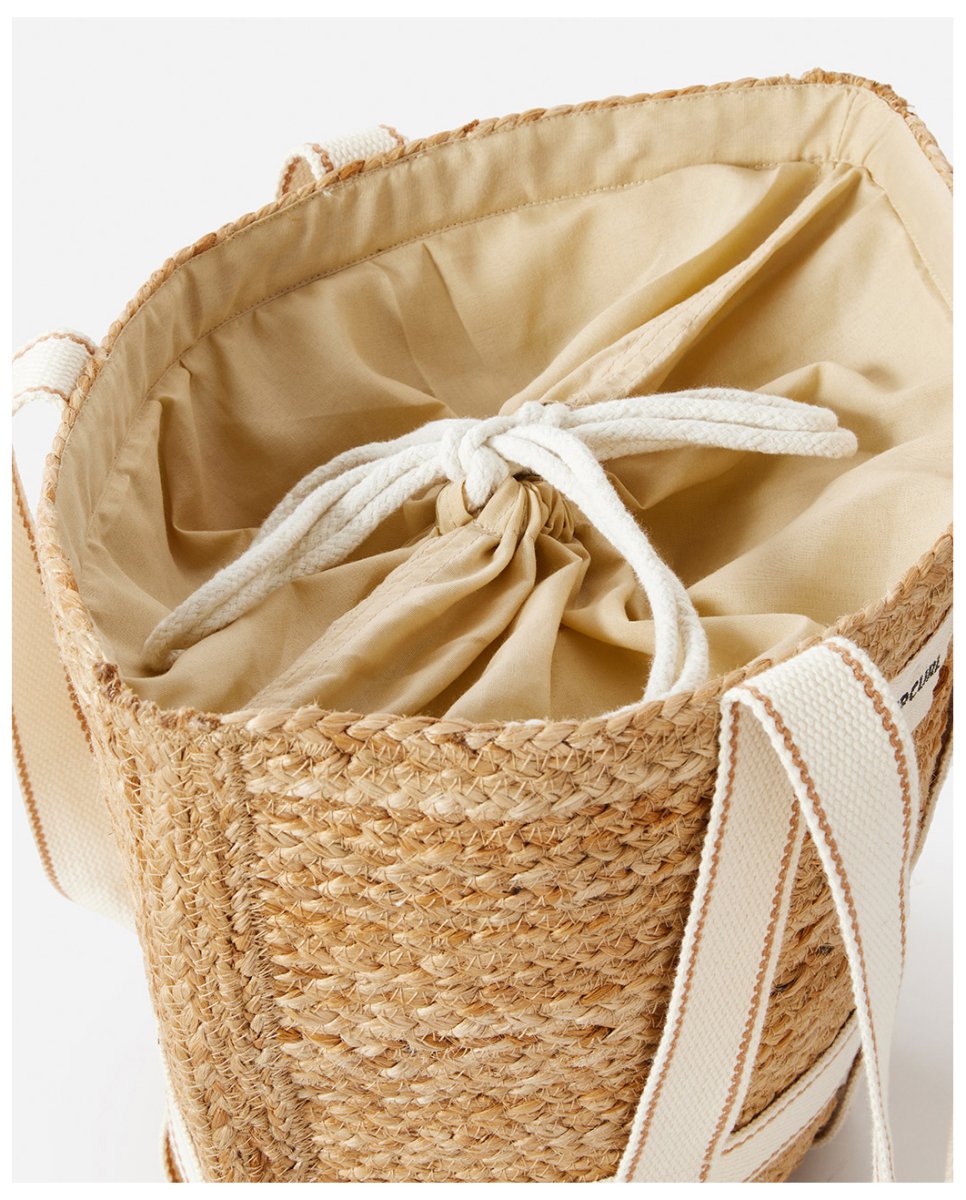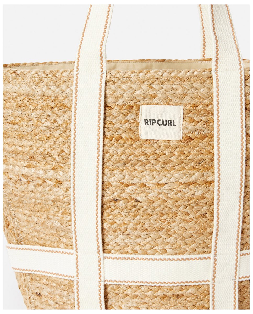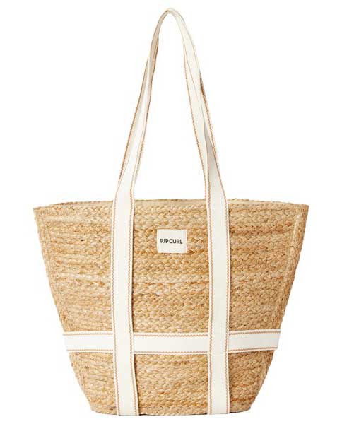 Bolso Rip Curl Premium Surf, confeccionado en yute 100%, asa ancha de algodón con doble costura para mayor durabilidad, parche con nombre de la marca, diseño tipo saco, forro completo de algodón de cierre ajustable con cinta, cómodo y práctico, el Premium Surf está pensado para acompañarte sea cual sea tu destino diario.