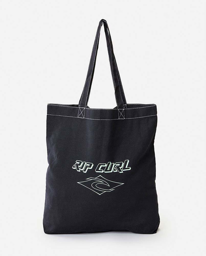 Bolso Rip Curl Variety Black Diamond, 100% algodón reciclado, capacidad 11L, medidas 5 x 45 x 50 cm, reutilizable, diseño y nombre de la marca en el centro.