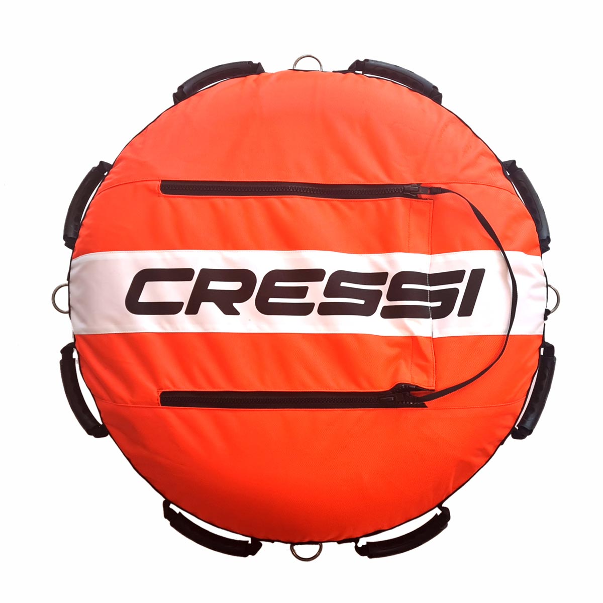 Cinchas inferiores en Dyneema® para una resistencia y duración muy superiores a los habitual en este tipo de boyas que tienen en el punto de tensión del lastre en la anilla central una zona crítica de desgarros al cabo de un tiempo. Base con red de drenaje reforzada