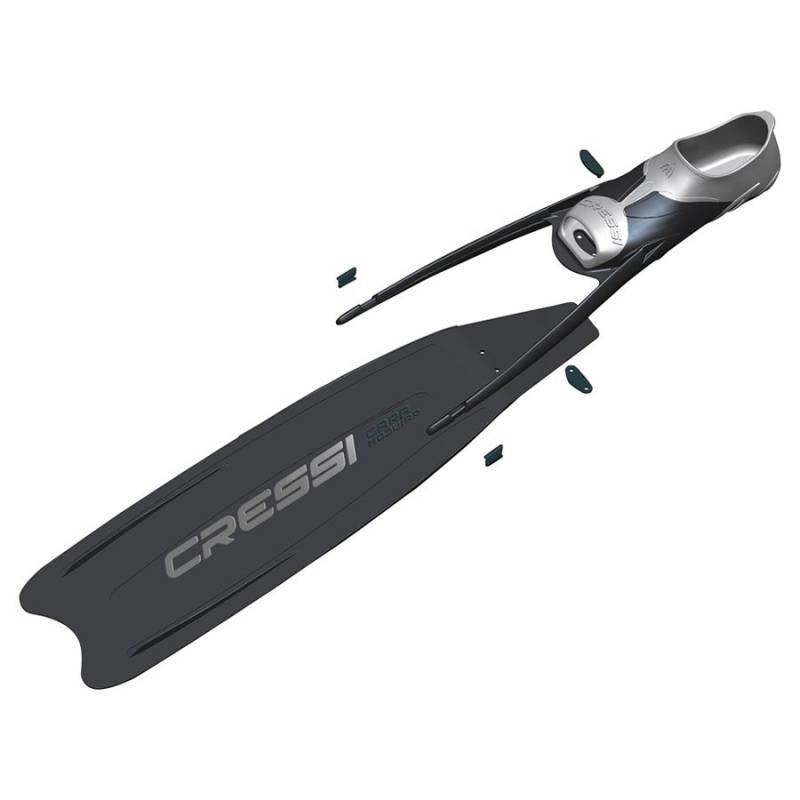 El empeine incorpora en su centro una banda de 2 cm de amplitud “Self adjusting”, que permite una leve dilatación (de 2 a 4 mm según talla) para adaptarse a personas con empeine alto o bien en caso de utilización de escarpines gruesos. La dilatación ha sido minuciosamente calibrada para no perjudicar la transmisión de energía.