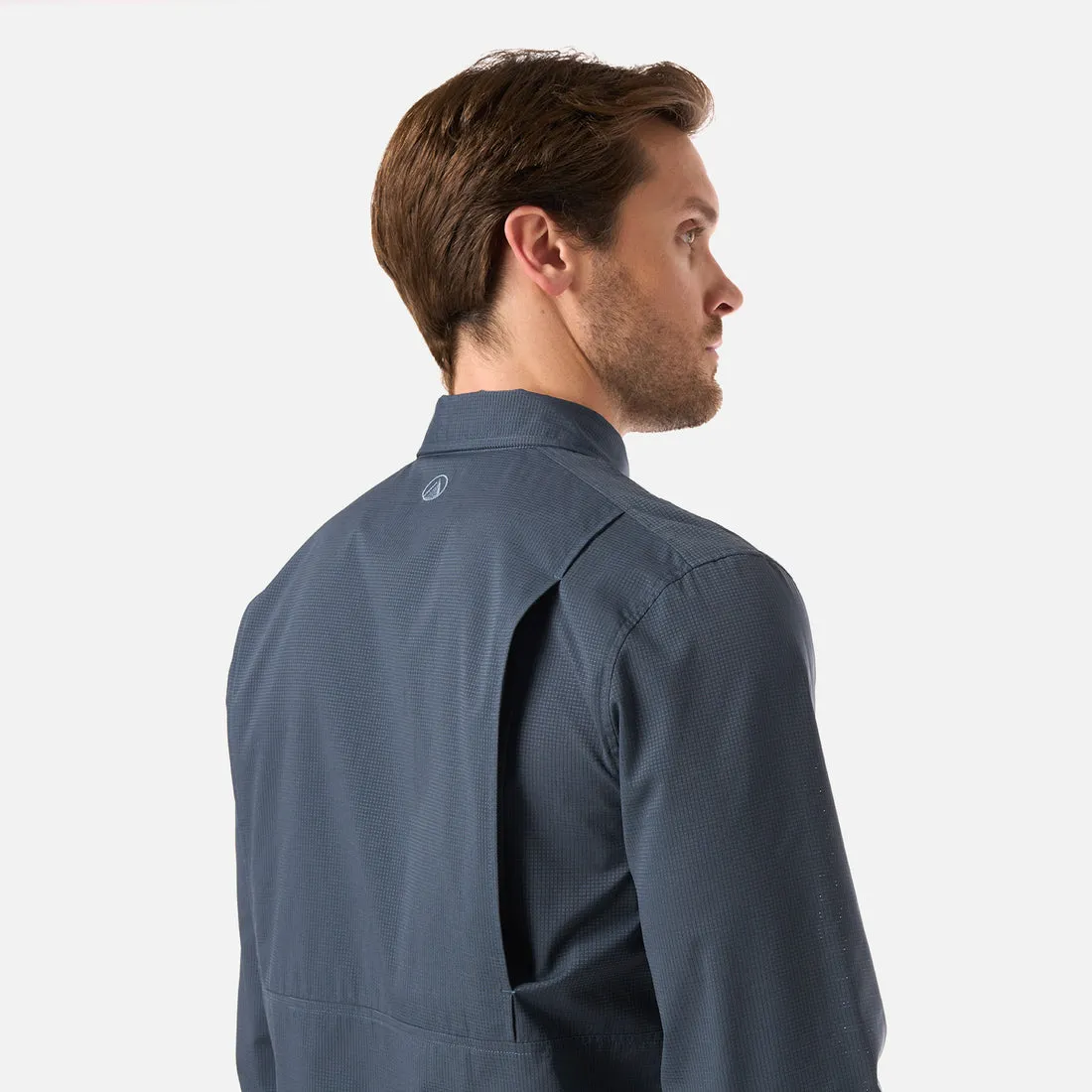 Pensada para días largos al aire libre, esta camisa de manga larga ofrece frescura, comodidad y funcionalidad en cada movimiento. Su tela de poliéster reciclado es liviana y de secado rápido, ideal para climas cálidos o rutas con exposición al sol. La espalda ventilada y los bolsillos en el pecho suman practicidad y ventilación extra, manteniéndote seco y cómodo durante toda la jornada. Perfecta para avanzar con ligereza, incluso cuando el calor aprieta