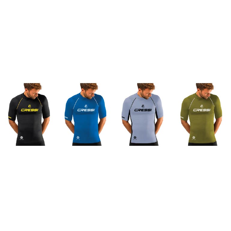 Camiseta disponible en manga corta y manga larga elaborada en tejido elástico de primera calidad con filtro de protección UV UPF 30+. Es una prenda idónea para proteger el cuerpo del nadador del viento, la radiación solar, la acción urticante de las medusas y los roces o cortes con el fondo marino.