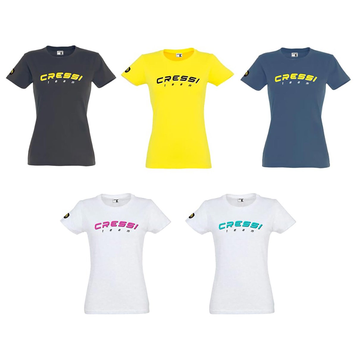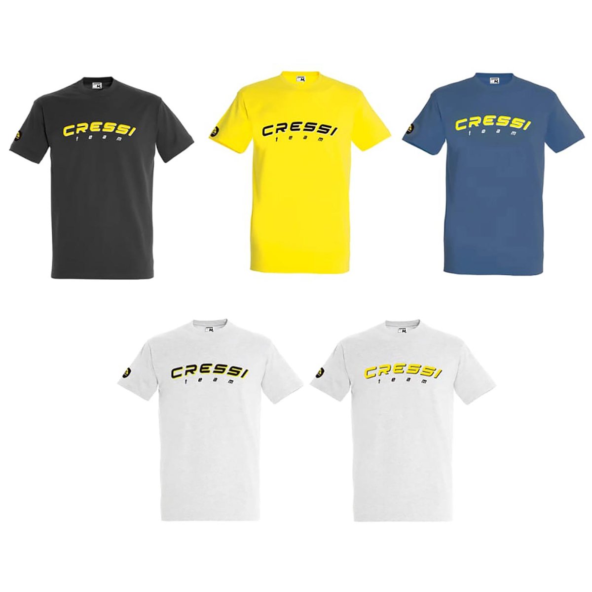 Camiseta de alta calidad en manga corta 100% algodón semipeinado de 190 g. Tapacosturas reforzado en cuello. Cuello canalé de elastano. Tubular. Logotipo a cuatro tintas. Logo bordado en manga. Suministro con bolsa Cressi Wear. 5 versiones de color para hombre y 5 para mujer.