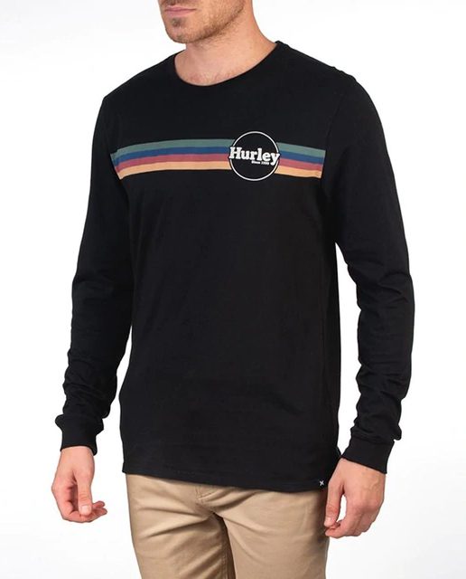 Camiseta Hurley Premium Jammer Stripe, en color negro y blanco, está fabricada con tejido suave para un máximo confort durante todo el día y un uso duradero. Manga larga con diseño y logo de la marca.