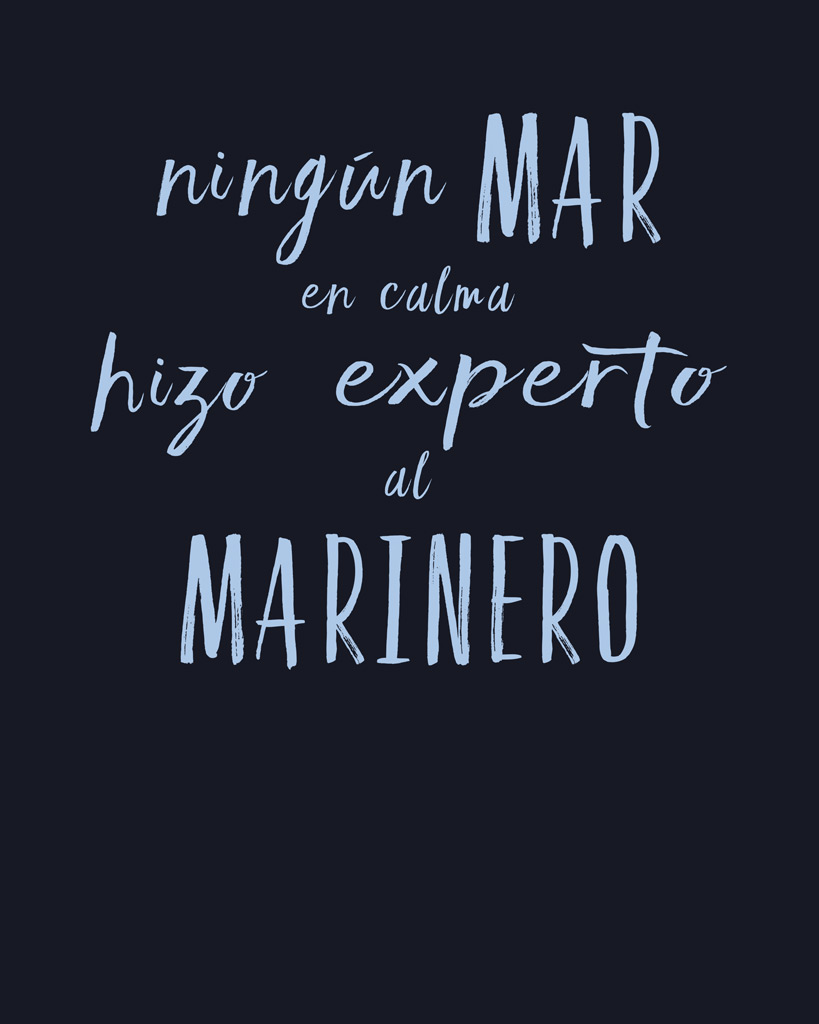 La camiseta marinera “Ningún mar en calma” representa el conocido dicho marinero «Ningún mar en calma hizo experto al marinero».