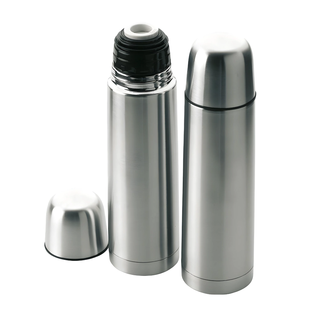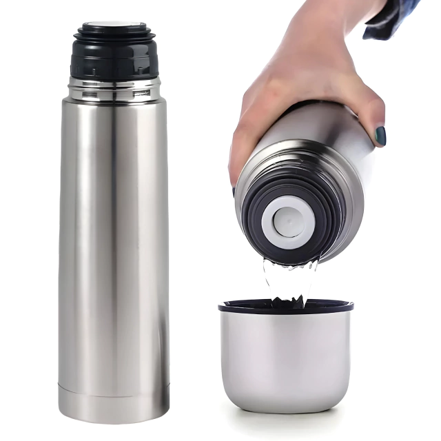 Termo para camping fuerte y resistente, fabricado en acero inoxidable de alta calidad.