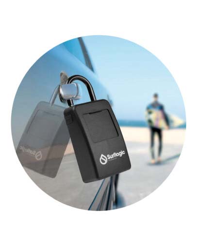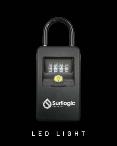 Candado Surflogic Led Light, fabricación metálica segura y resistente al agua, respaldo de espuma y gancho recubierto para proteger la superficie del coche, fácil de asegurar en cualquier lugar, código de 4 dígito con luz LED, incluye la batería con cubierta protectora, se presenta con una bolsa para bloquear la señal FOB de la llaves inteligentes. Disfruta de tus actividades al aire libre sin preocuparte por tus llaves.