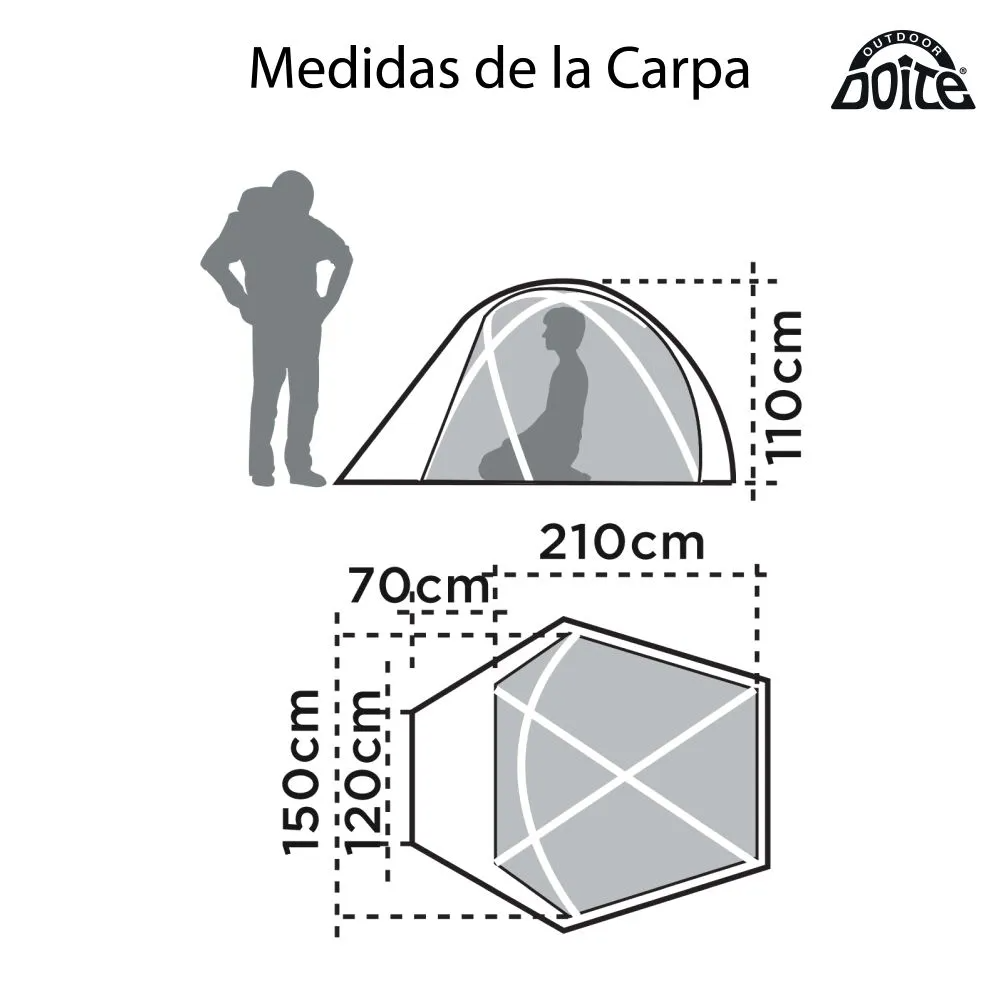 Carpa de línea Técnica – Trekking. Están diseñadas especialmente para hacer senderismo, muy livianas, de fácil armado y compactables. PESO: 3,3 Kg aprox.