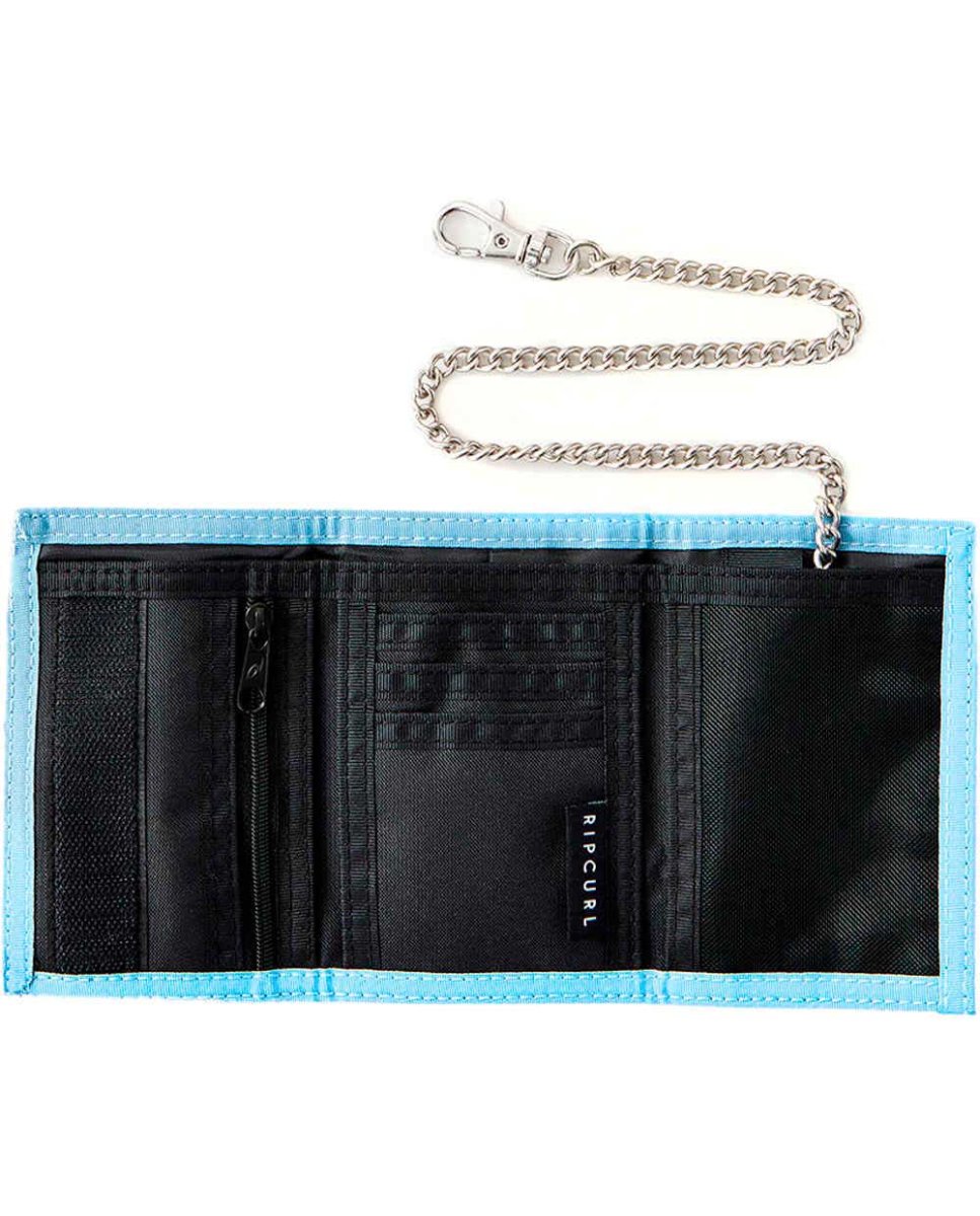 Cartera Rip Curl Surf Chain, la Surf Chain tiene un montón de funcionalidades, viene con cadena porta llaves, múltiples apartados porta tarjetas, bolsillo interior con cremallera, confeccionada en poliéster reciclado, lavable y duradero, con un diseño de los grandes clásico de los 70 esta cartera está pensada para ser el complemento perfecto.