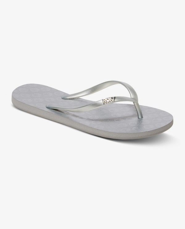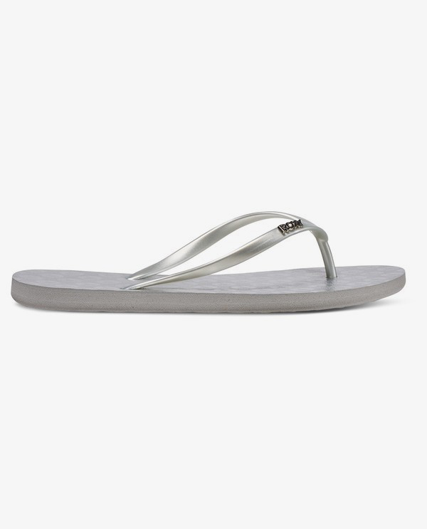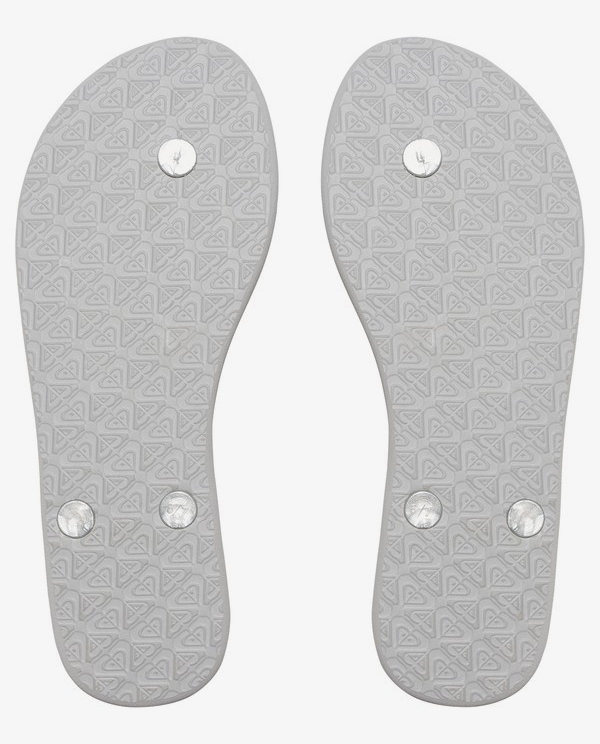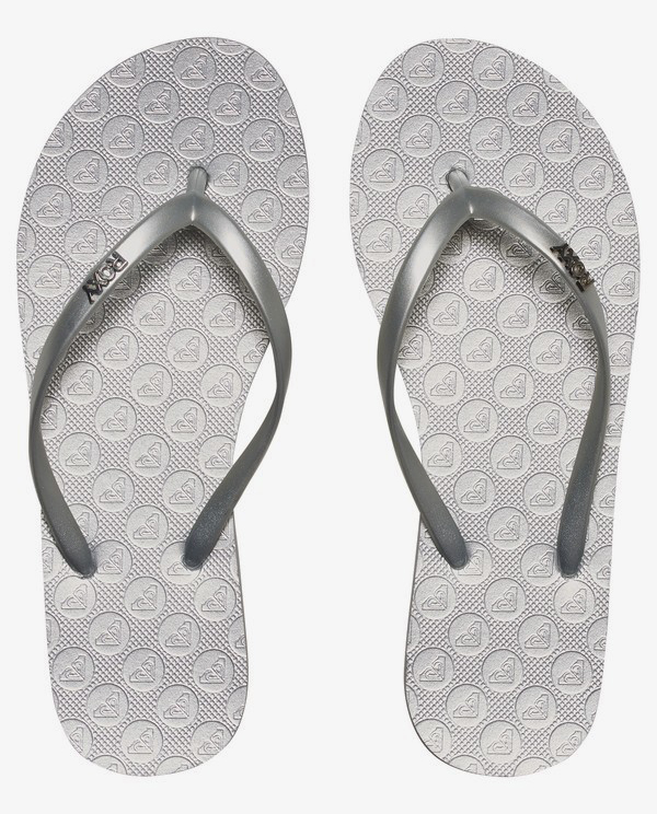 Chanclas Roxy Viva plateada, plantilla y suela con logo en relieve en fibra sintética, pin plateado de la marca en la parte superior. De diseño cómodo y funcional, estas chanclas están pensadas para tus días de playa o piscina.
