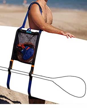 Cinta Transporte Tabla Sup Sami&Bro, 100% poliéster, ajustable con cierre en velcro, hombrera acolchada para una mayor amortiguación en el transporte, malla porta objetos, presentada con bolsa para almacenaje, de fácil colocación y manejo, fabricado para tablas rígidas de 29″ a 34″ de manga y para hinchables de no más de 32″, ideal para facilitarte el transporte practicando tu deporte favorito.