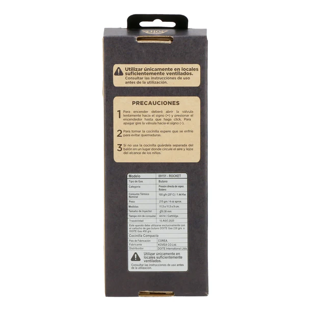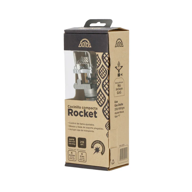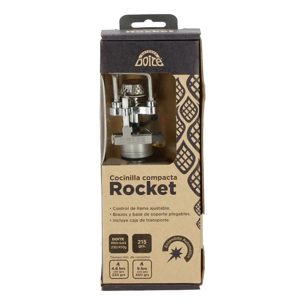 Cocinilla compacta y liviana hecha de acero inoxidable. Además el quemador permite un buen rendimiento calórico y control de llama ajustable. Este modelo viene con un bolso de transporte; lo cual es de fácil transporte, pero no incluye gas.