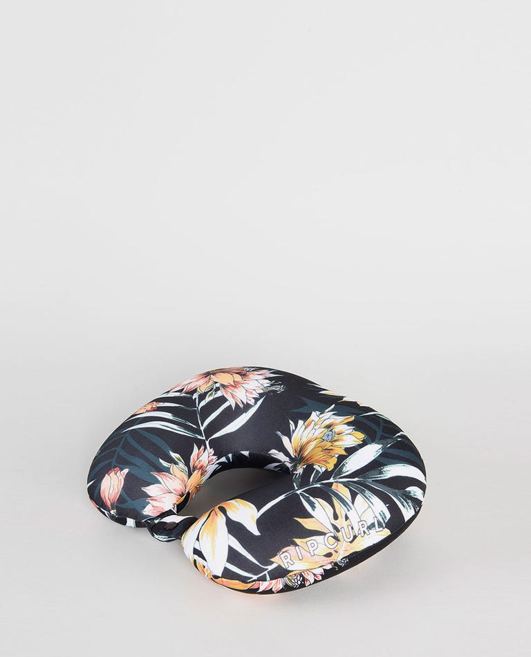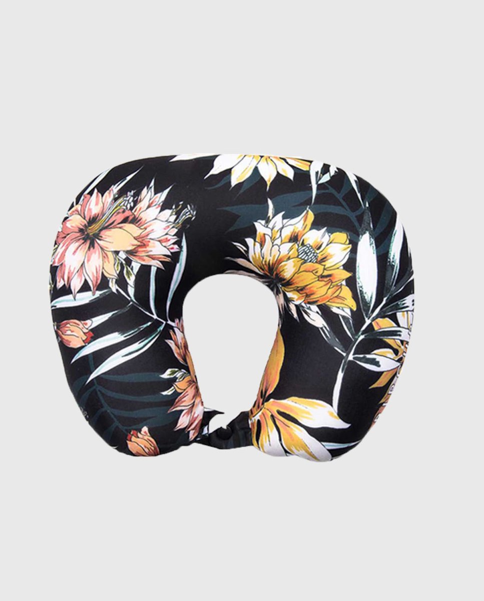 Cojín Rip Curl Viaje Flores. Cojín de viaje relleno de microesferas, tiene un lado de forro polar super suave y el otro mezcla nylon y elastano. Fresco y transpirable, para que se adapte a todos tus viajes, con independencia del clima. De estampado tropical y diseño de la marca, ideal para acompañarte en todas tus aventuras.