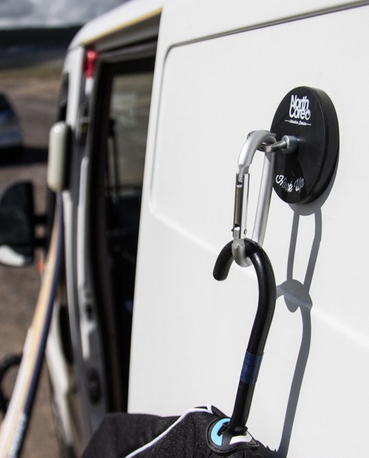 Base magnética que se adhiere a tu coche, perfecto para poder colgar y secar tu traje de neopreno después de una sesión de surf.