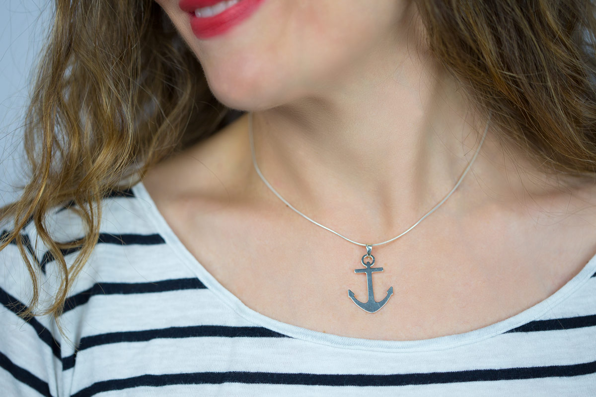 Colgante ancla de plata de ley con cadena de plata de ley para mujer. Viene en caja de regalo. A juego con pendientes ancla plata de ley.