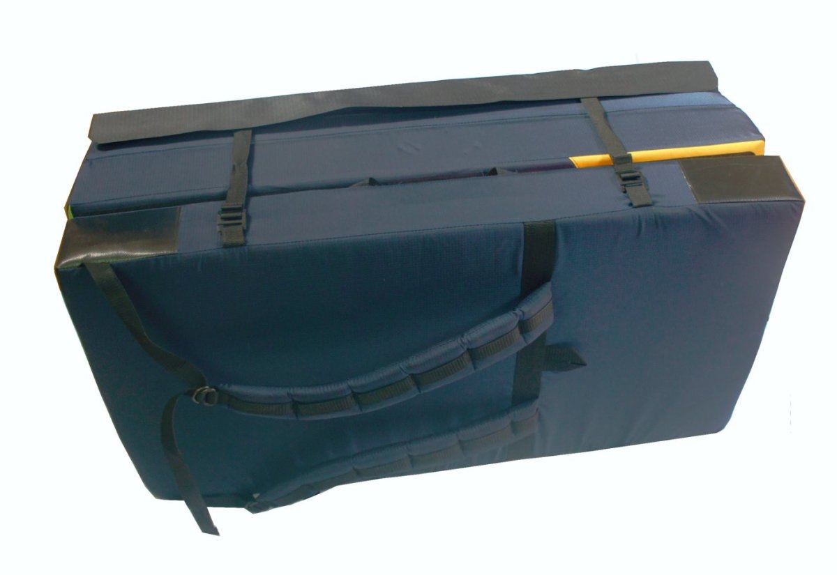 Colchoneta (crashpad) portatil para escalada en bloque (baja altura- boulder)Fabricada con espuma de alta densidad que amortigua efectivamente las caídas durante la practica de escalada en bloque (boulder).