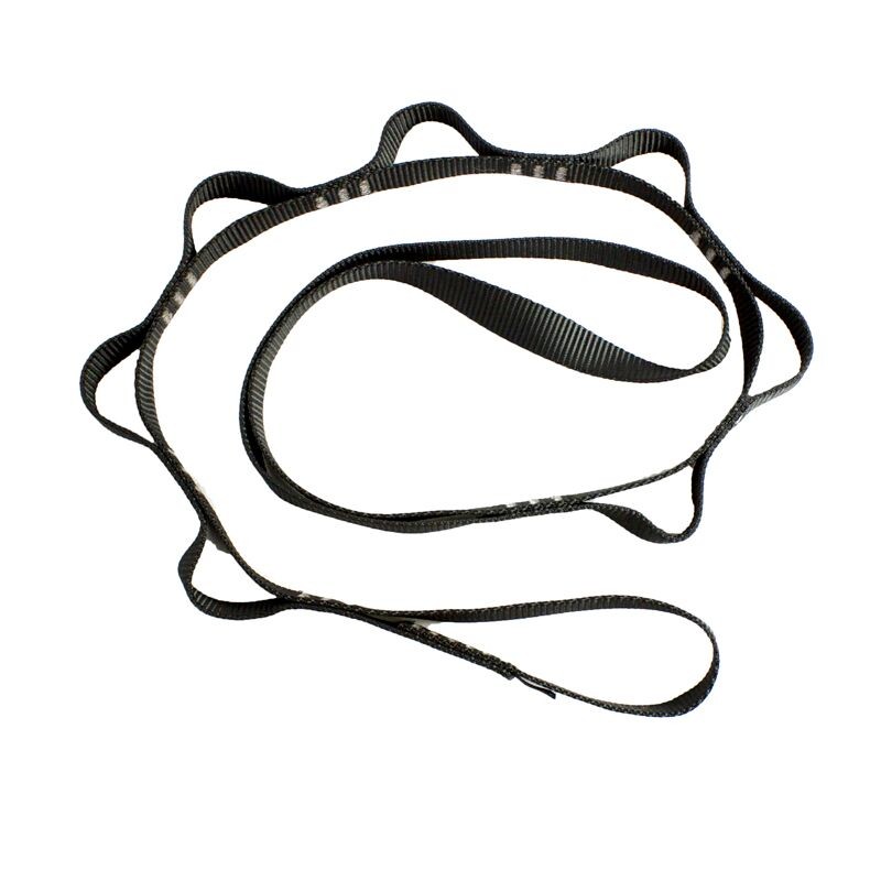 Cinta de nylon de 19 mm de ancho cosida sobre sí misma para crear bucles (total de 7 bucles). Una daisy chain es un componente primario de cualquier plataforma de escalada artificial. Combine con un atrier (escalerilla) para tener el kit completo para escalada artificial