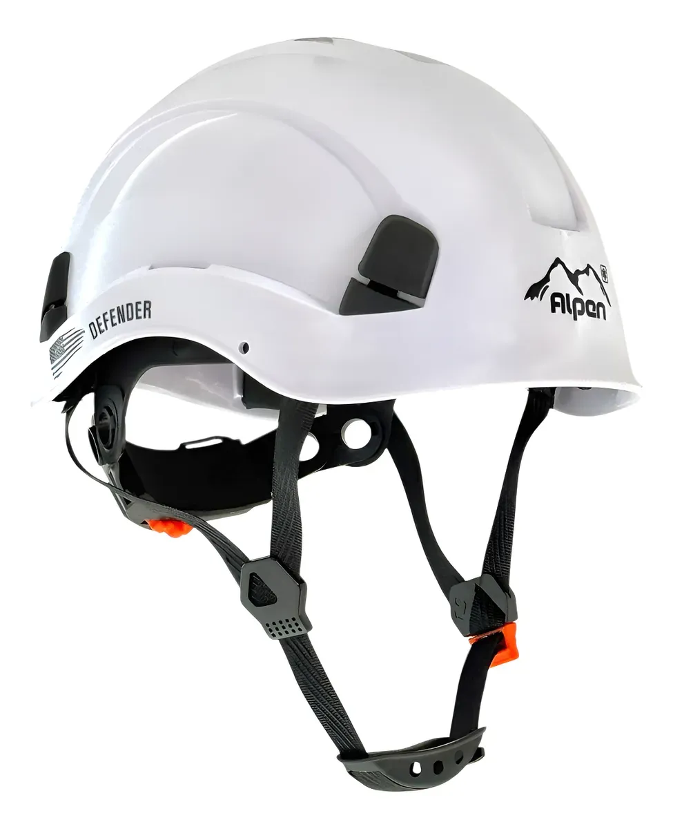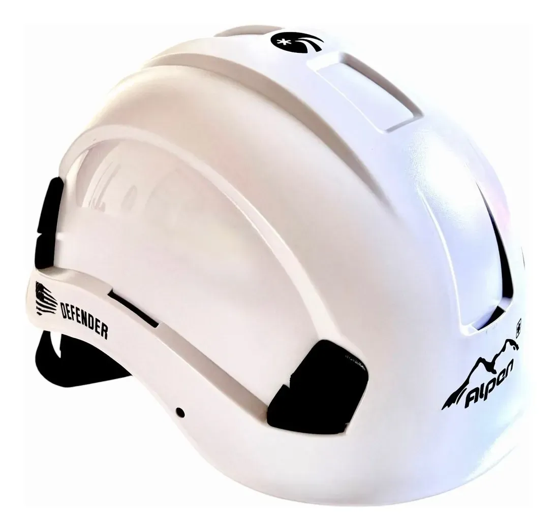 Equipo de protección individual para trabajo industrial que cumple con la normativa EN 50365:2002 que especifica los requisitos para cascos eléctricamente aislantes, destinados a instalaciones de baja tensión o cerca de partes en tensión. Protegen al usuario contra la electrocución al utilizarse junto con otros equipos aislantes impidiendo que la corriente eléctrica pase por el cuerpo humano a través de la cabeza. El casco Alpen Defender, conforme a la directiva 89/686/EEC y CE EN 1385:2012, ofrece protección contra impactos, posee gran robustez y resistencia a la deformación lateral, a su vez cuenta con certificación EN 397:2012+A1:2012 para trabajo en alturas y rescate, también, está testado su uso a temperaturas extremas (120°C hasta -40°C).