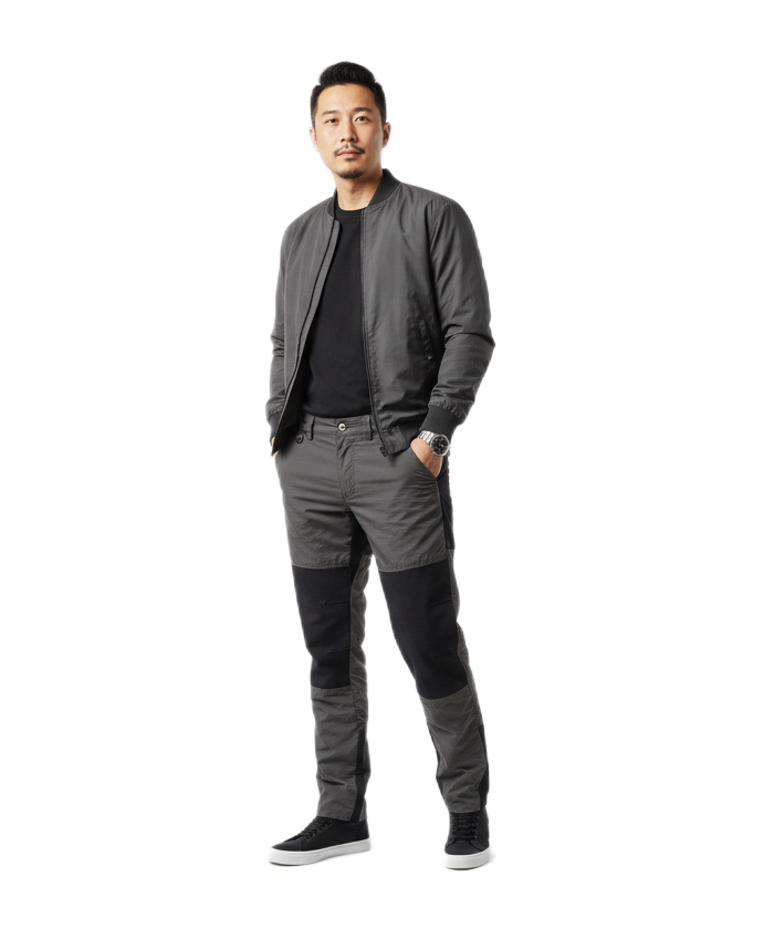 – Para dar comodidad y libertad de movimiento, incorpora tela flexible en partes claves tal como rodillas y entre-pierna.