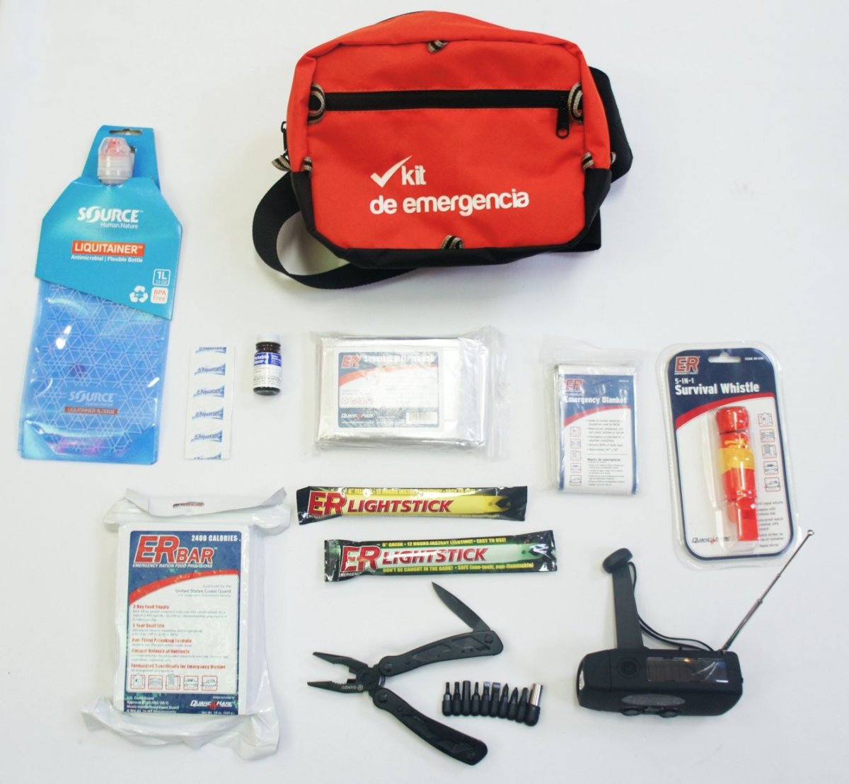 Kit completo para situaciones de emergencias en la ciudadElementos esenciales de supervivencias para la ciudad, fundamental en situaciones inesperadas de emergencia tal como terremotos y desastres naturales.