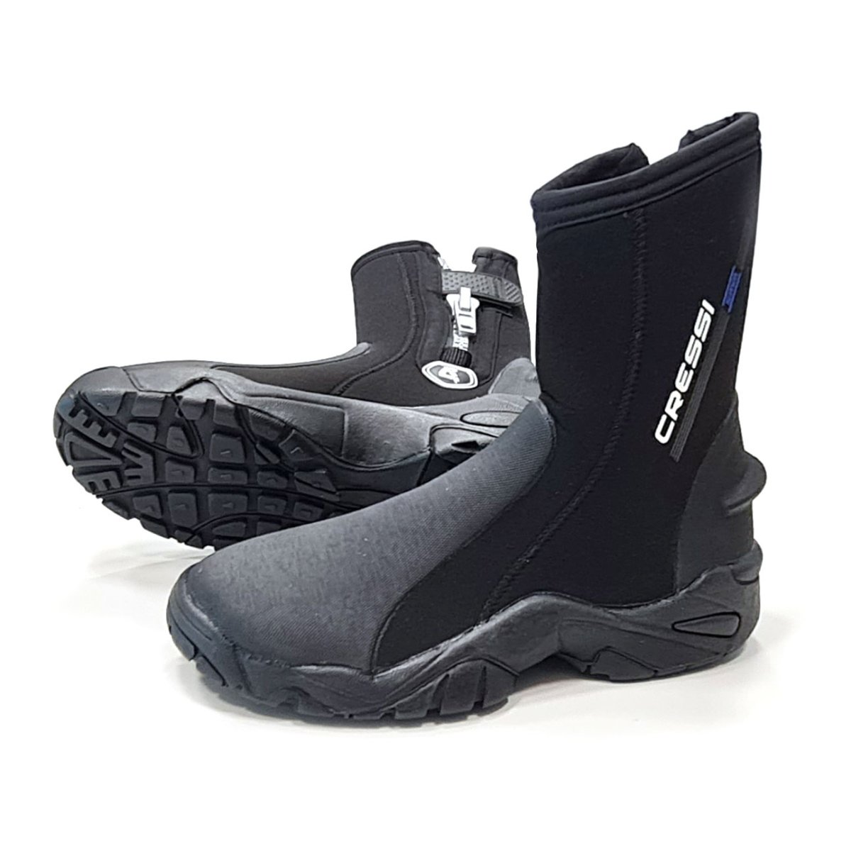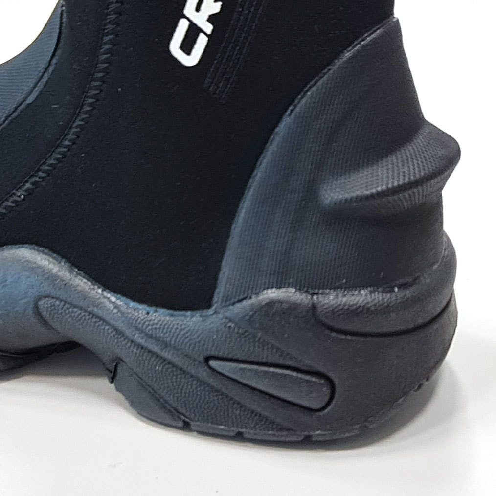 Escarpìnes de alta gama con suela reforzada flexible y antideslizante con perfiles redondeados . Solapa interior cerrada WATERPROOF para una máxima estanqueidad. Cremallera lateral de tecnopolímero YKK© 8 pitch con refuerzo textil en la base. Inserción de Velcro© que evita la tan apertura de la cremallera. Refuerzos flexibles que cubren el empeine y el talón con inserción antideslizamiento de la tira de la aleta. Caña con inclinación anatómica. Neopreno resistente a la compresión de 5 mm de espesor.