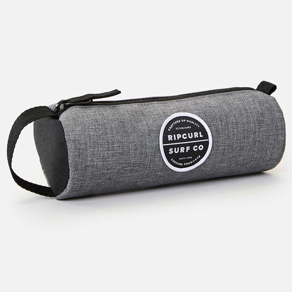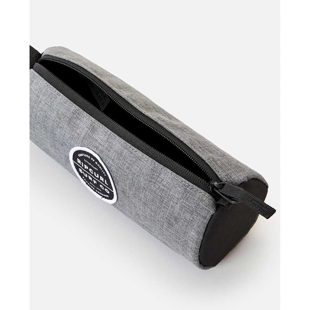 Estuche Rip Curl Essentials Eco, 100% Poliéster reciclado, medidas 7cm alto por 21cm ancho, compartimento sencillo, cierre de cremallera y asa de transporte con cincha, insignia tejida, 1 litro. El estuche Essentials Eco es un clásico accesorio de colegio ideal para llevar contigo en tu día a día.
