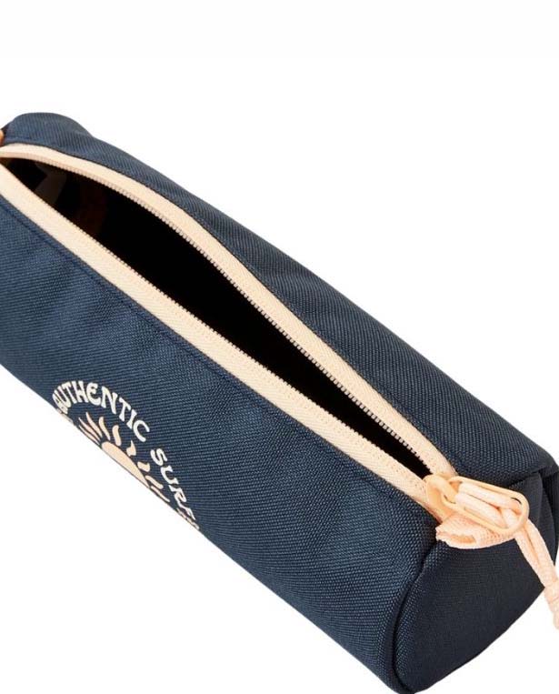 Estuche Rip Curl Reentry, 100% Poliéster, medidas 7cm alto por 21cm ancho, compartimento sencillo, cierre de cremallera y asa de transporte con cincha, insignia tejida, 1 litro. El estuche Re Entry es un clásico accesorio de colegio ideal para llevar contigo en tu día a día.