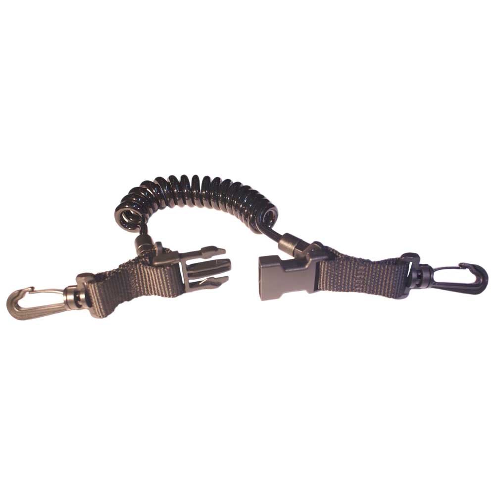 Extensor para cámaras y linternas con dos mosquetones de plástico en los extremos.
