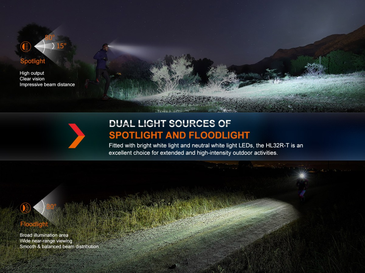 La Fenix HL32R-T es una linterna frontal de alto rendimiento para trail running. Incluido con un solo paquete de baterías ARB-LP1900 y compatible con 3 baterías AAA, el Fenix HL32R-T emite una potencia máxima de 800 lúmenes y tiene un impresionante tiempo de ejecución de hasta 150 horas. Luz concentrada y luz difunminada controladas por separado por dos interruptores, la distancia máxima del haz de 132 metros, la protección con clasificación IP66 y el cuerpo liviano de magnesio hacen que el Fenix HL32R-T sea una opción sofisticada para diversos tipos de actividades al aire libre: carreras de montaña, montañismo y trekking.