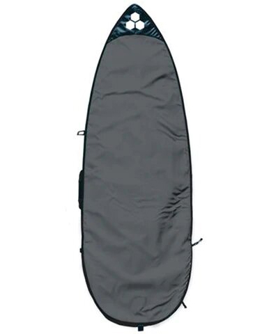 Funda surf Channel Featherlight Hybrid Charcoal (varias medidas), realizada en una combinacion de lona elástica e impermeable con la punta reforzada, cierre trasero de cremallera, cantos laterales reforzados acolchados de 3 mm ideal para proteger tu tabla de surf del sol y de pequeños golpes, ligera y cómoda de guardar.